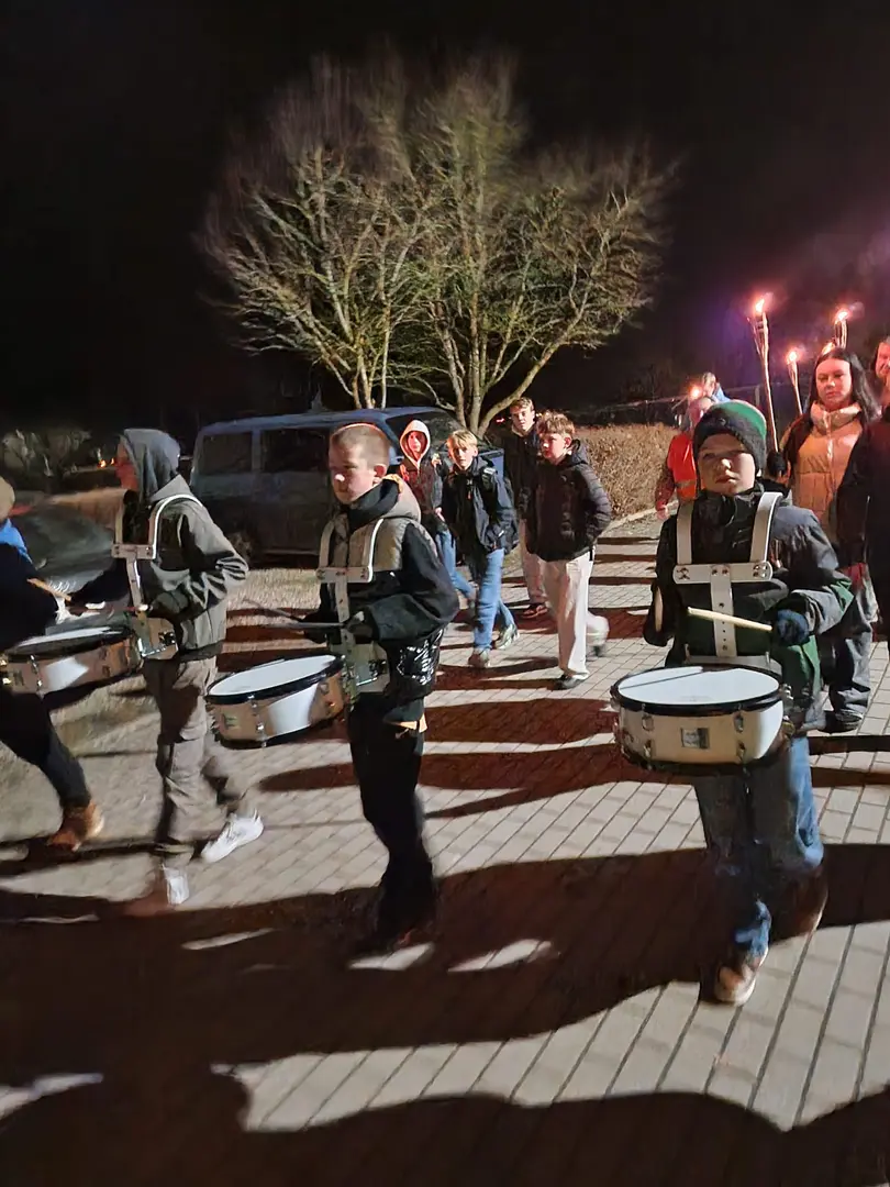 Audzēkņi ar gājiena bungām devās cauri lielai daļai Pūres teritorijas, radot siltu un patriotisku noskaņu šajā nozīmīgajā dienā.